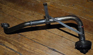 The pickup tube is complete. I ended up using parts from two pickup assemblies and some new tubing also. I didn't want to have so many joints in it, but I don't have a bender for this size of tubing. When you make this take your time and make sure that it follows the windage tray closely so it doesn't hit the shallow pan. I didn't care for the amount of tube that extended past the point for the braces so I added in a piece of strap to protect the assembly from vibration. Hopefully this design is adequate because if it breaks the motor isn't going to be happy with me. I'll finish the oil pan this week and post some pictures. By then the rest of my parts for the turbo manifold should be here and I can get started on that. Here are a couple of pics of the pickup tube.